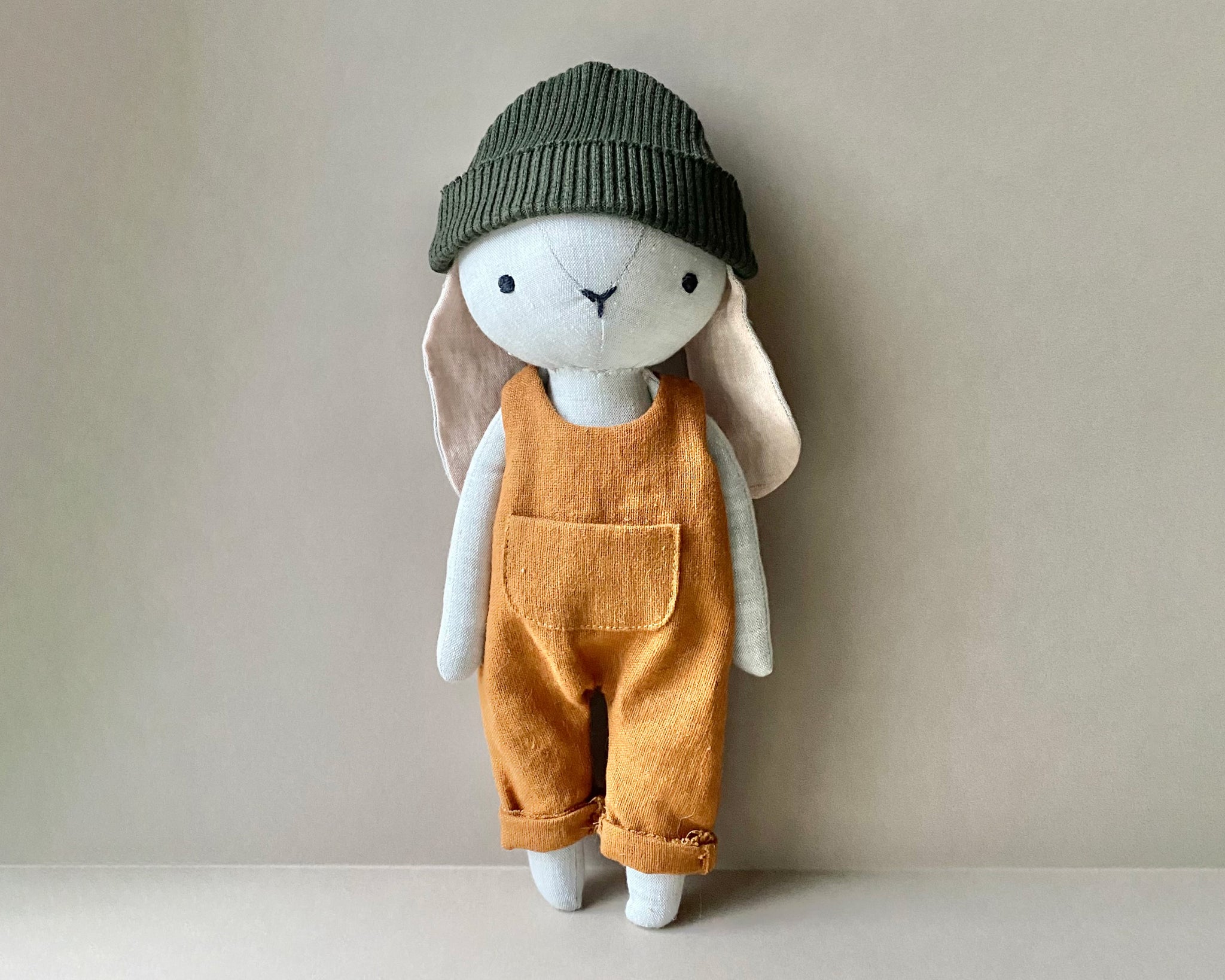 We used a 100% linen fabric and a washed linen for the overalls.