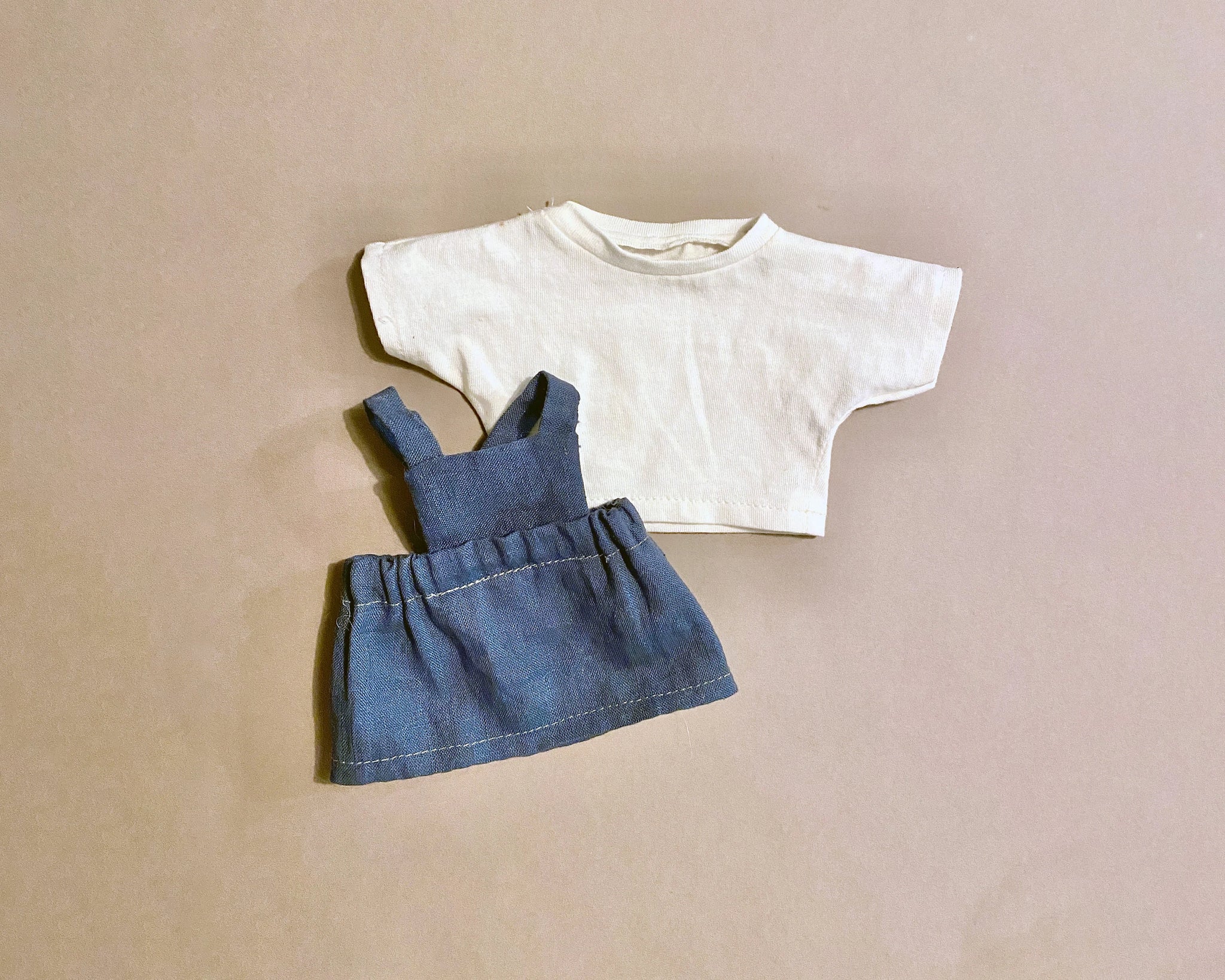 We used a 100% linen fabric and a washed linen for the dress and single jersey for the top. For the ears we used teddy fabric.